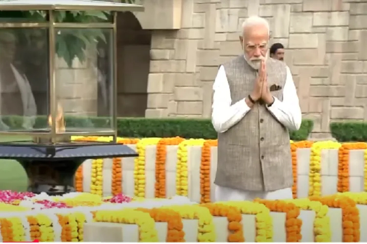 نئی دہلی، وزیر اعظم نریندر مودی نے جمعرات کو بابائے قوم کی یادگار راج گھاٹ کا دورہ کیا اور انہیں ان کی یوم پیدائش پر خراج عقیدت پیش کیا۔ نائب صدر سی پی رادھا کرشنن نے بھی راج گھاٹ پر ان کی یوم پیدائش پر انہیں خراج عقیدت پیش کرنے کے لے حاضری دی۔