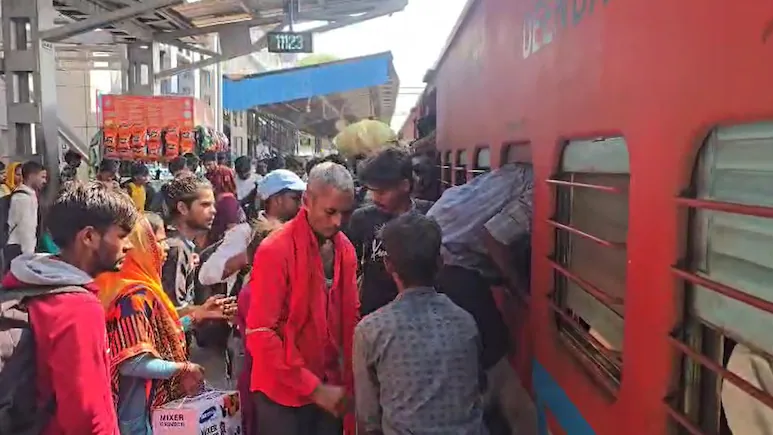 دیوالی صرف دو دن کی دوری پر ہے۔ جھانسی سے گورکھپور، کانپور اور لکھنؤ جانے والی ریل گاڑیوں میں بھیڑ ہے، وقت پر اپنے گھروں تک پہنچنے کے لیے بے چین ہیں۔ زیادہ ہجوم کی وجہ سے کوچوں میں داخلے کے لیے جھگڑا شروع ہو گیا ہے۔ صورتحال یہ ہے کہ ایمرجنسی کھڑکیوں سے نہ صرف سامان کو دھکیلا جا رہا ہے بلکہ مسافر بھی سامان کی طرح کوچوں میں داخل ہو رہے ہیں۔ تاہم محکمہ ریلوے کا دعویٰ ہے کہ متوقع رش کے پیش نظر اضافی ٹرینیں چلائی جا رہی ہیں اور انتظامات کیے جا رہے ہیں۔